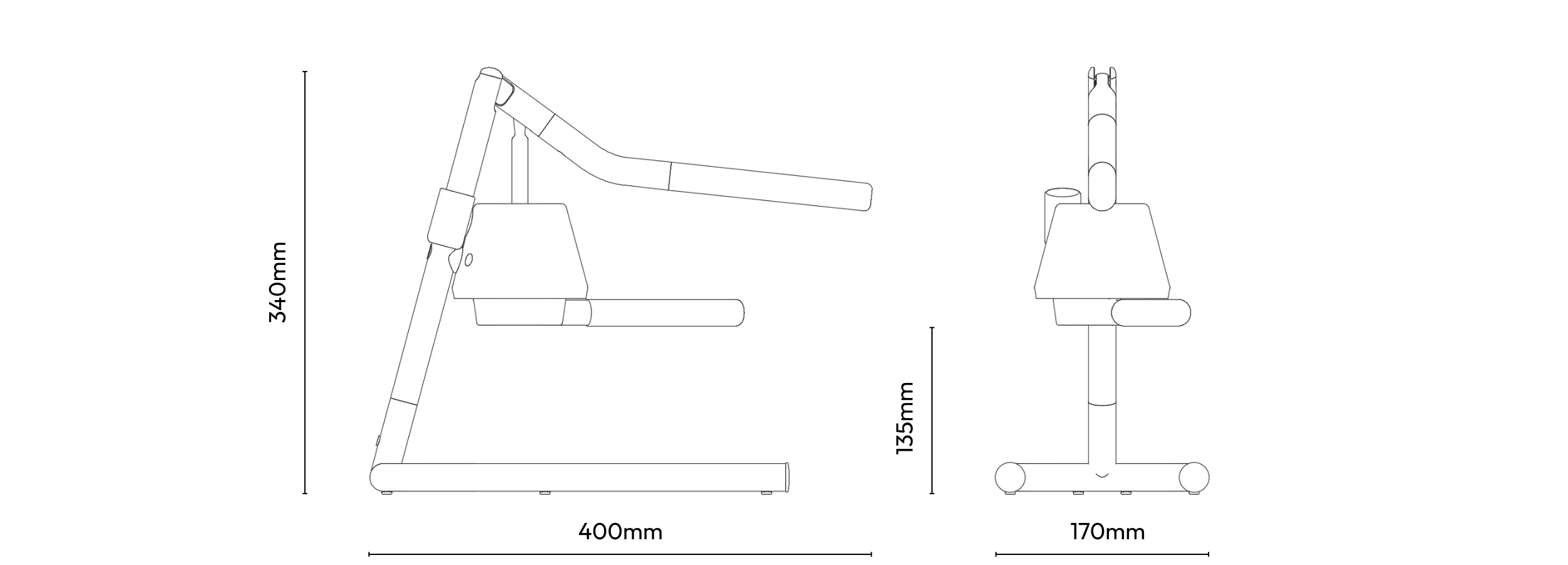 - Frame & Base: Anodised aluminium frame with a welded steel base